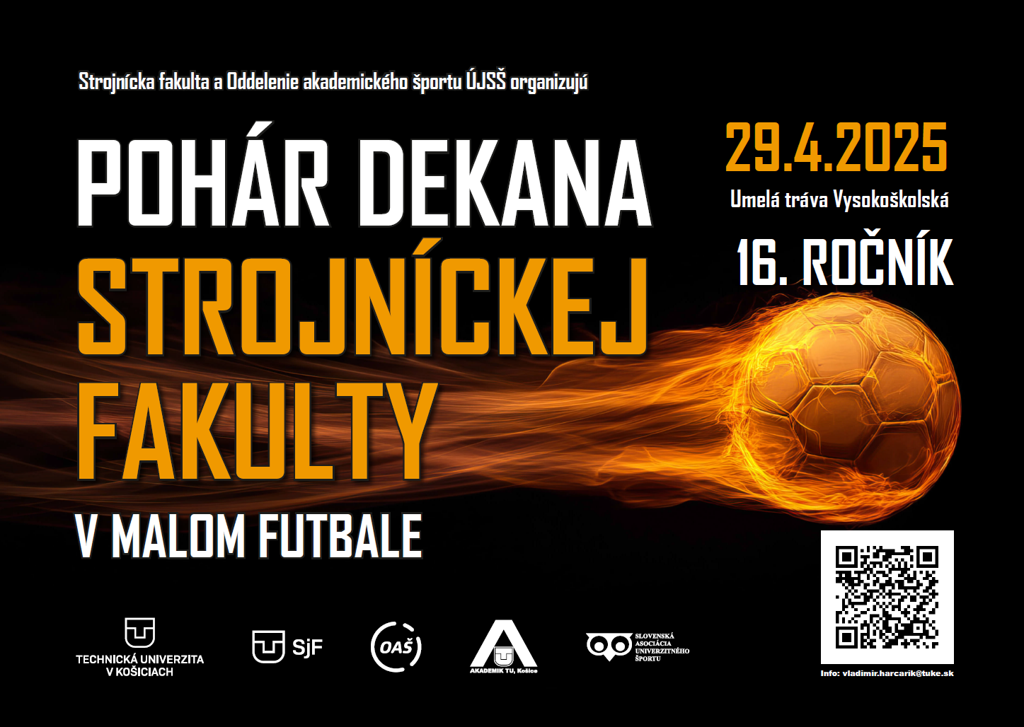 Dávame Vám do pozornosti pripravované podujatie o Pohár dekana SjF v malom futbale , ktorý sa uskutoční dňa 29.apríla 2025 na ihrisku Vysokoškolská (umelá tráva) .
